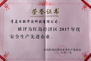 青島日聯(lián)華波科技有限公司獲得青島市紅島經(jīng)濟(jì)區(qū)二〇一五年度安全生產(chǎn)先進(jìn)企業(yè)稱號(hào);