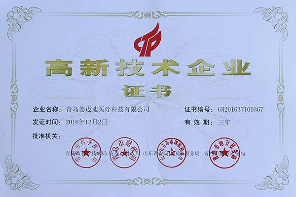 青島德邁迪醫(yī)療科技有限公司獲得青島市科學(xué)技術(shù)局&青島市財(cái)政局&山東省青島市國(guó)家稅務(wù)局&青島市地方稅務(wù)局高新技術(shù)企業(yè)證書(shū);